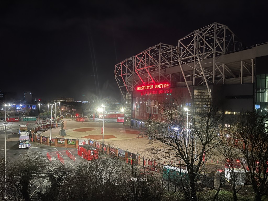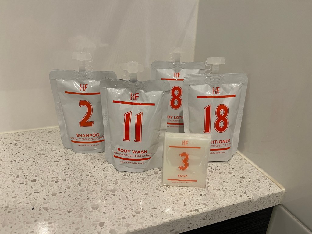 Arrived this evening in Manchester at the Hotel Football, a Marriott property right next to the Old Trafford football ground where I’ll be for the match tomorrow.